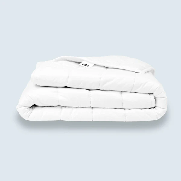 Ella Tyngdedyne er den klassiske model i Anew Sleeps sortiment og bestselleren på det danske marked. Dynen er opbygget af syv lag: de to yderlag er 100 % bambus, mellemlagene er polyesterfibre, og det inderste lag indeholder bittesmå lydløse glasperler med en diameter på 0,8 mm. Glasperlerne er fordelt jævnt over hele dynens flade – ingen klumper, ingen forskydning.